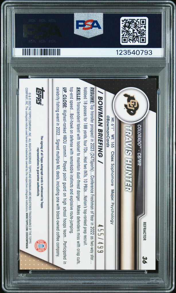 Travis Hunter - 2023 Bowman University Chrome Autograph Refractor PSA 9 455/499
