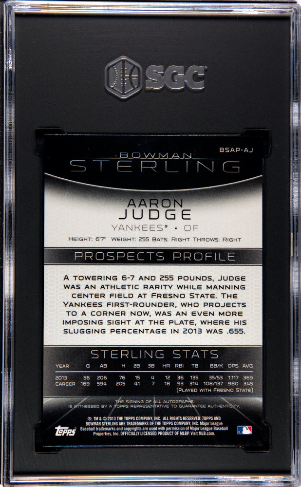 Aaron Judge - 2013 Bowman Sterling Prospect Autograph SGC 9.5