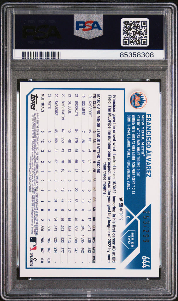 Francisco Alvarez - 2023 Topps Orange Foil PSA 9 253/299