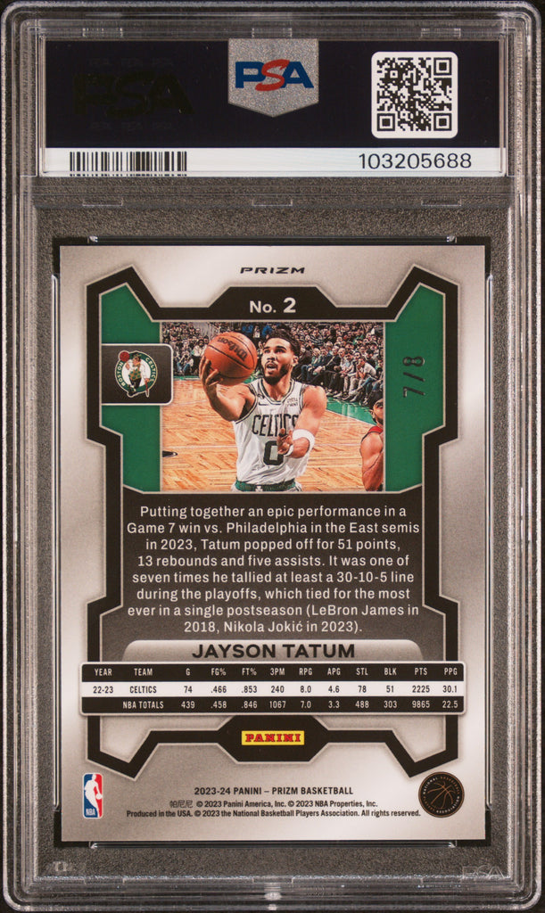 Jayson Tatum - 2023 Panini Prizm Green Sparkle PSA 10 7/8