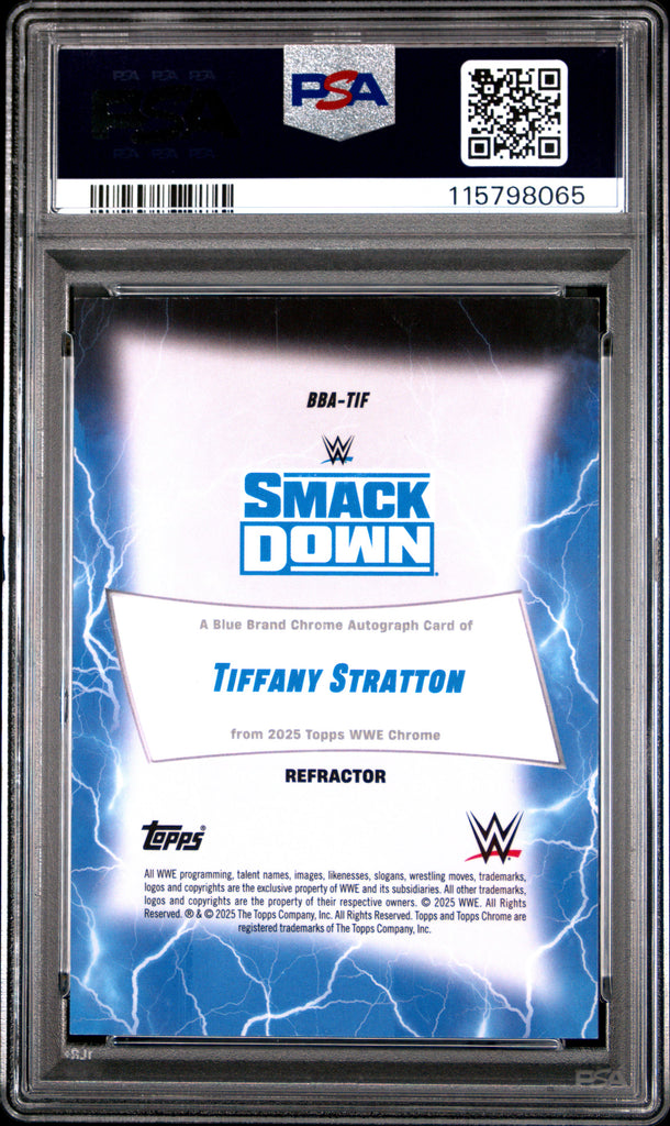 Tiffany Stratton - 2025 Topps Chrome WWE Blue Brand Chrome Autographs Ref PSA 9 154/175