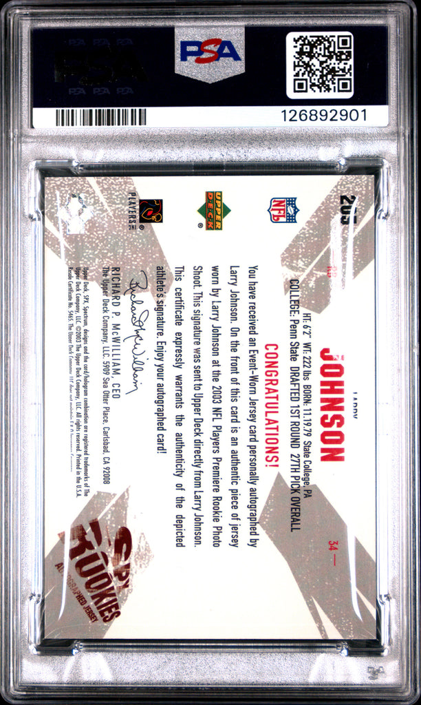 Larry Johnson - 2003 SPX Signed Jersey PSA 8 1070/1100