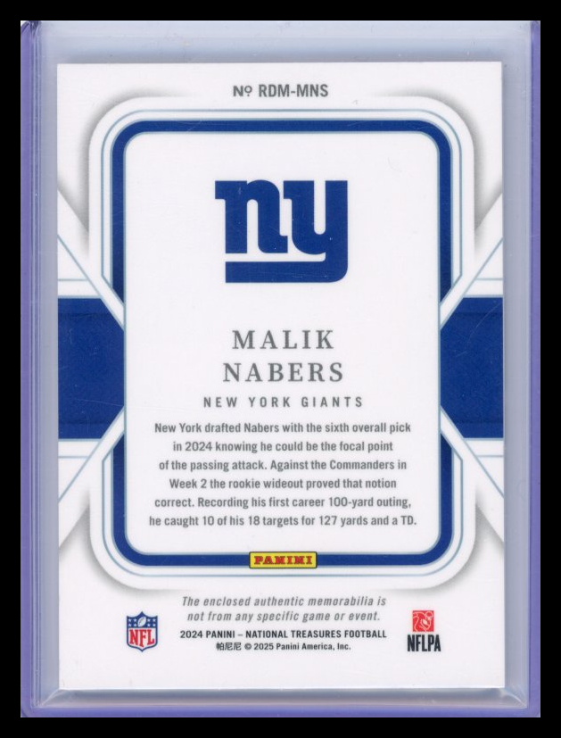 Malik Nabers - 2025 Panini National Treasures Football RC Patch 41/49