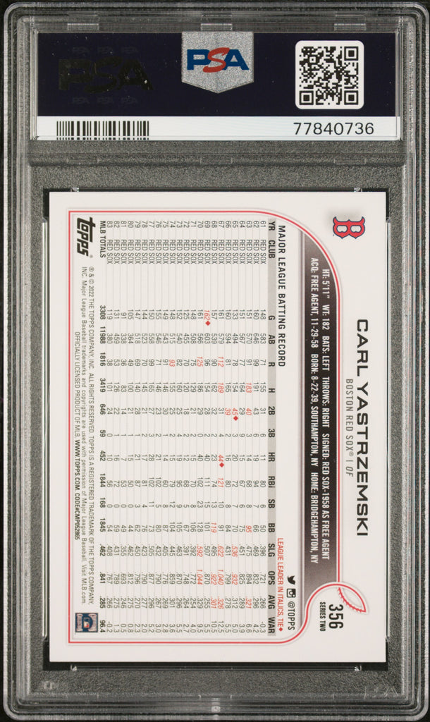 Carl Yastrzemski - 2022 Topps SP Photo Variation PSA 10 #356