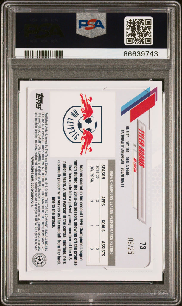 Tyler Adams - 2020 Chrome UEFA Champions League Sapphire Edition Purple PSA 9