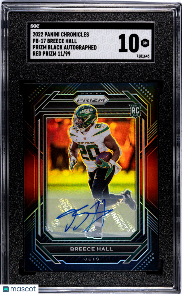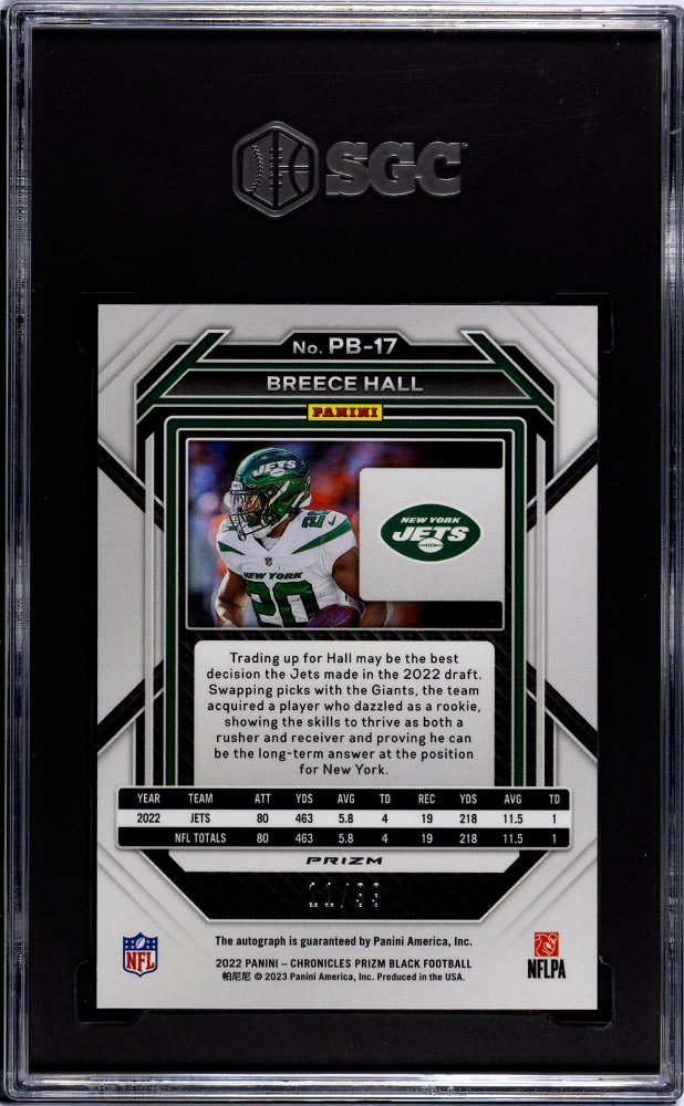 Breece Hall - 2022 Panini Chronicles Prizm Black Autograph Red Prizm SGC 10 /99