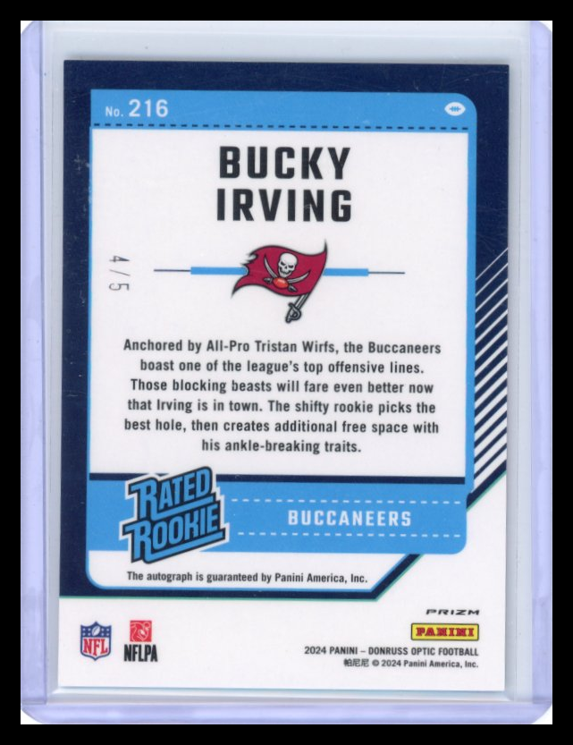 Bucky Irving - 2024 Panini Donruss Optic Football Green Rookie Auto 4/5
