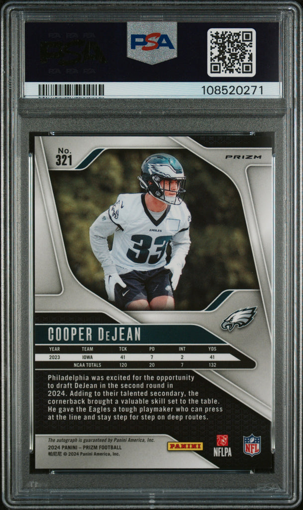 Cooper Dejean - 2024 Panini Prizm Autograph PSA 10