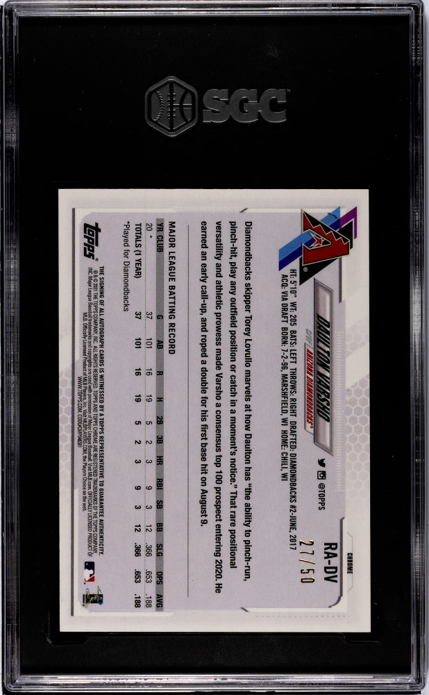 Daulton Varsho - 2021 Topps Chrome Rookie Autograph Gold Wave Refractor SGC 10
