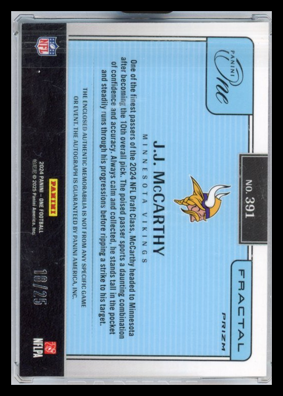 J.J. McCarthy - 2024 Panini One Fractal Patch RC 18/25 Gold