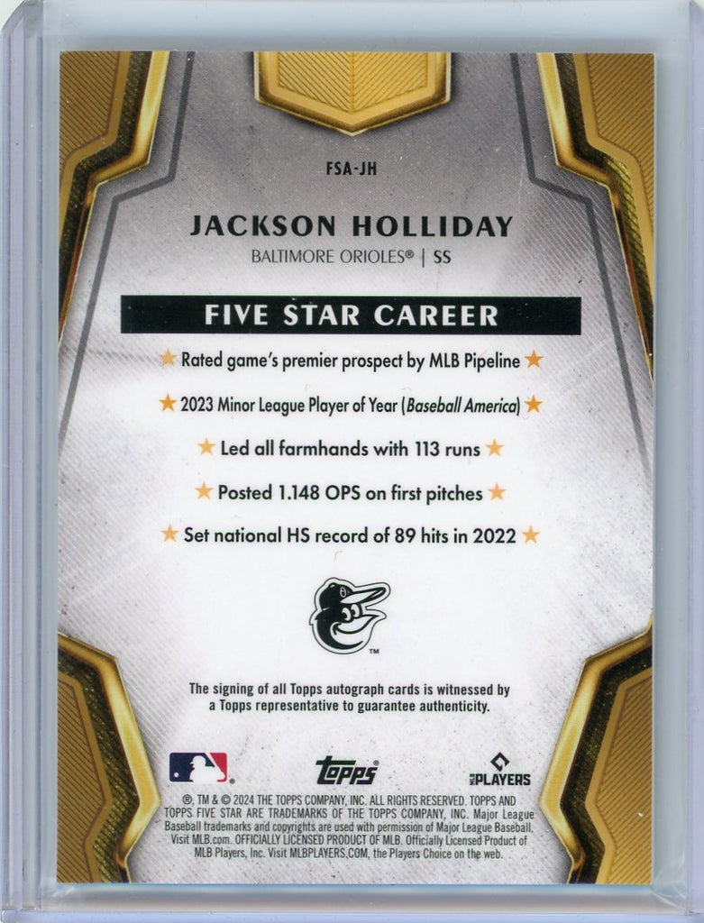 Jackson Holliday - 2024 Topps Five Star Rookie Auto Blue RC 02/25 FSA-JH