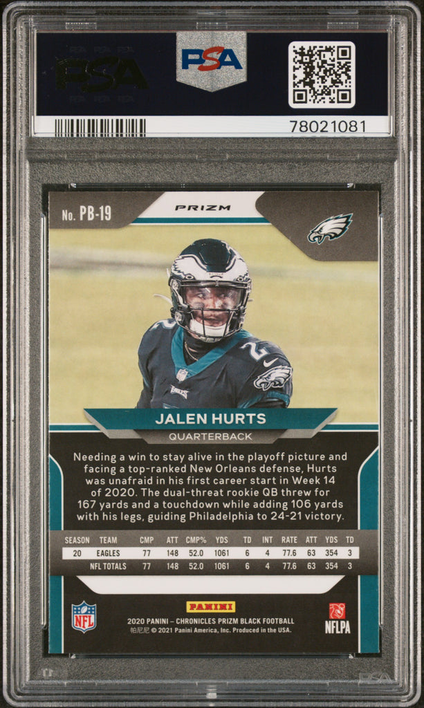 Jalen Hurts - 2020 Panini Chronicles Prizm Black Silver PSA 9