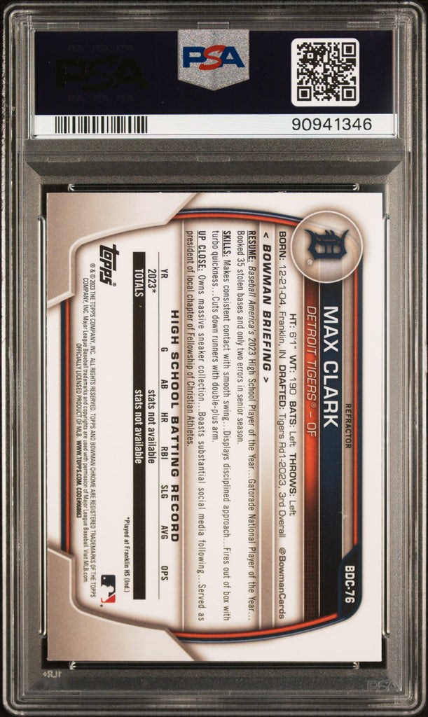 Max Clark - 2023 Bowman Draft Chrome Refractor PSA 10