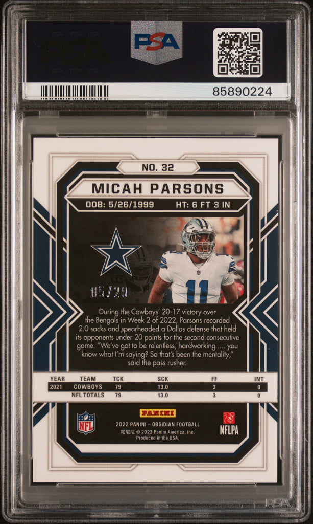 Micah Parsons - 2022 Panini Obsidian Electric Etch Red Flood PSA 9 /29