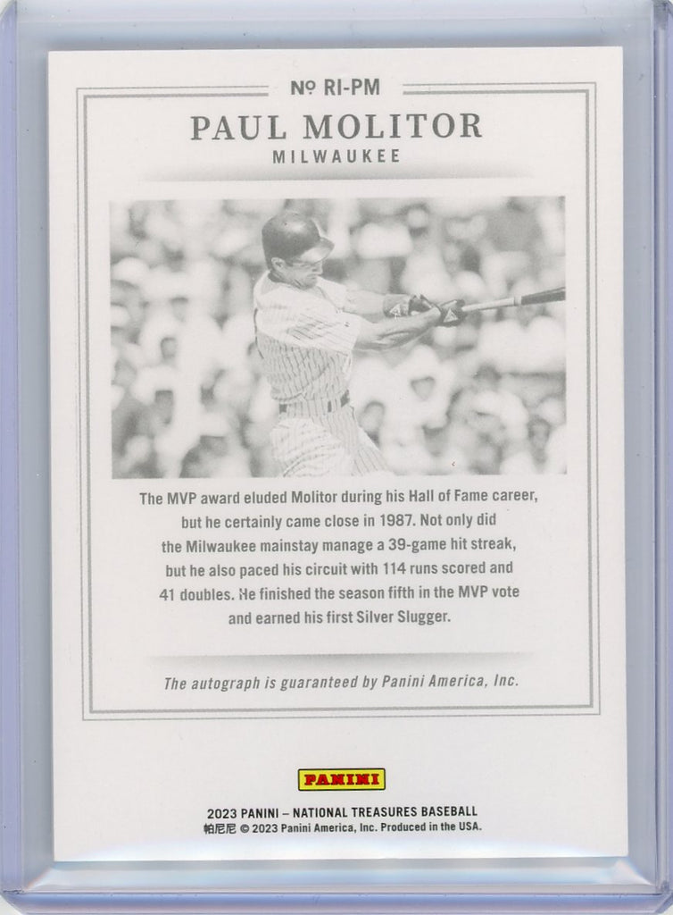 Paul Molitor - 2023 Panini National Treasures Baseball Retro Ink Gold Auto 01/10