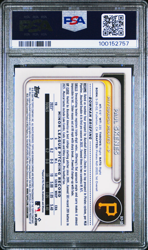 Paul Skenes - 2024 Bowman Mega Box Chrome Prospects PSA 10 Rookie