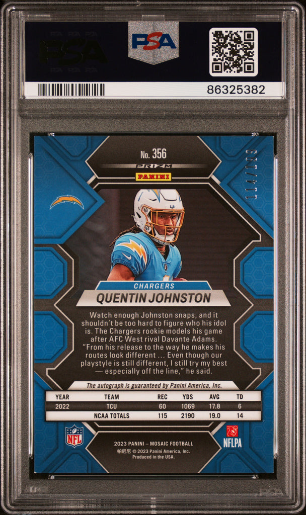 Quentin Johnston - 2023 Panini Mosaic Autograph Red PSA 9