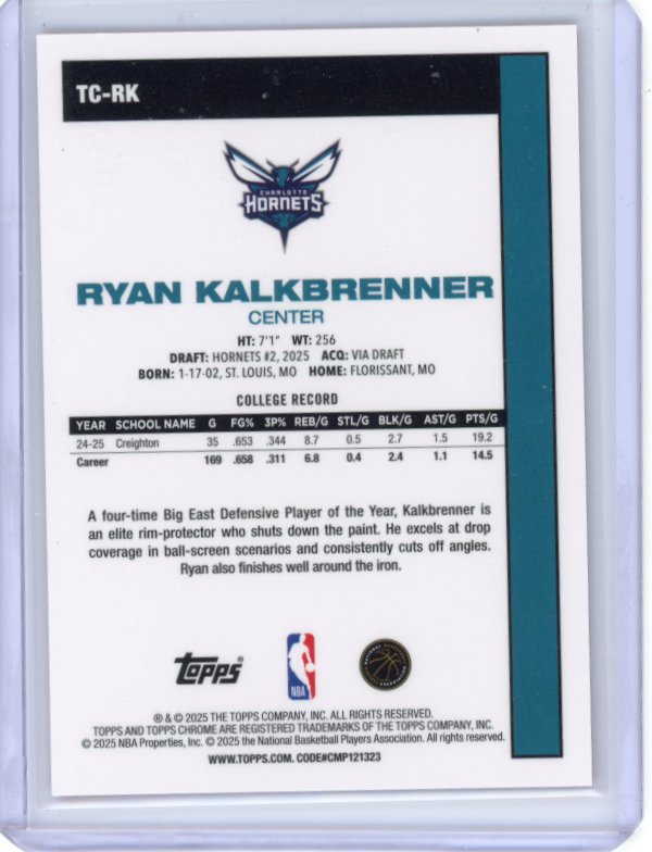 Ryan Kalkbrenner - 2025 Topps Chrome Red Chrome RC 2/5