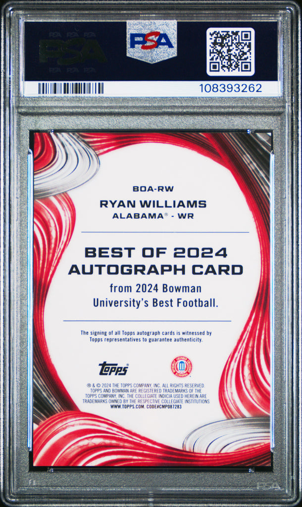 Ryan Williams - 2024 Bowman Best University Best Of 2024 Autographs PSA 9