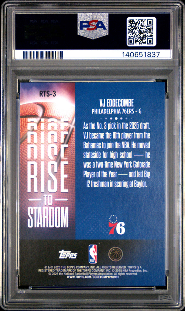 VJ Edgecombe - 2025 Topps Rise To Stardom Rnbw Flbrd PSA 9