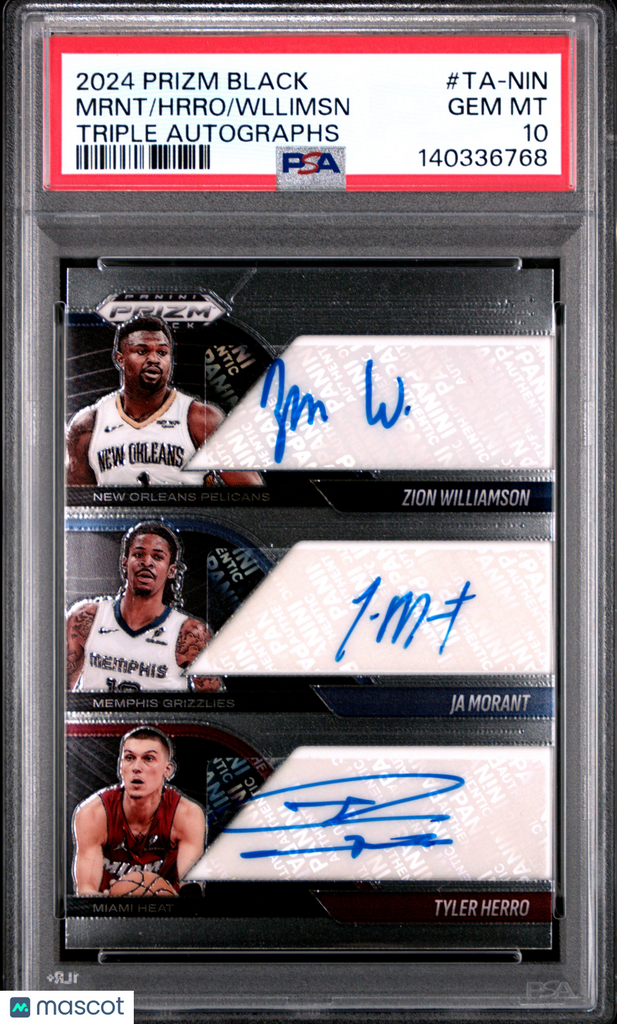 Zion Williamson Ja Morant Tyler Herro 2024 Panini Prizm Black Triple Auto PSA 10